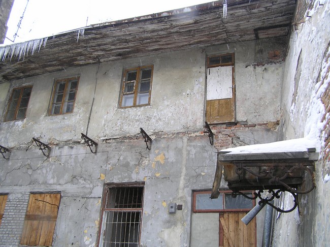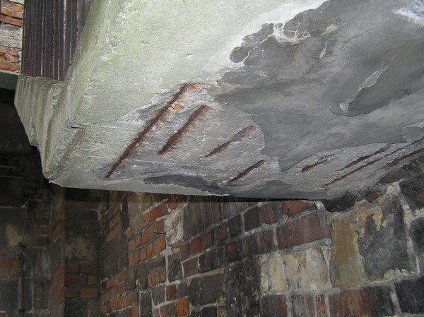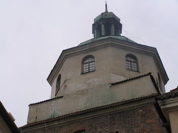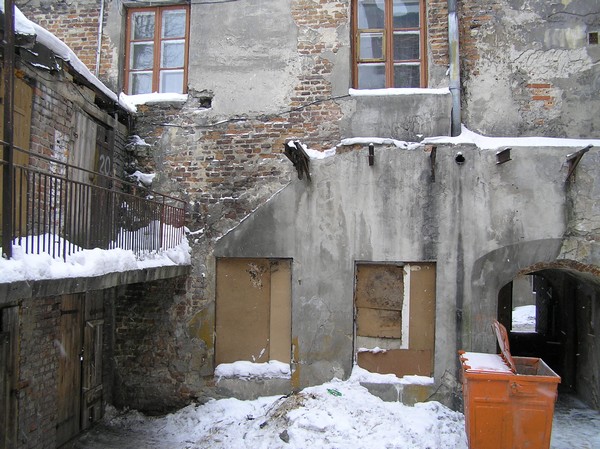 Lublin, ul. Dominikańska 7. Kamienica zabytkowa, silnie zniszczona wskutek wieloletnich zaniedbań i braku remontów przez blisko pół wieku. Kilkakrotne awarie wodociągowe i kanalizacyjne. Wiele ścian i sklepień silnie spękanych, zagrożonych awaria. Ekspertyza budowlana, luty 2006r. Autor: inż. J. Fronczyk z zespołem.